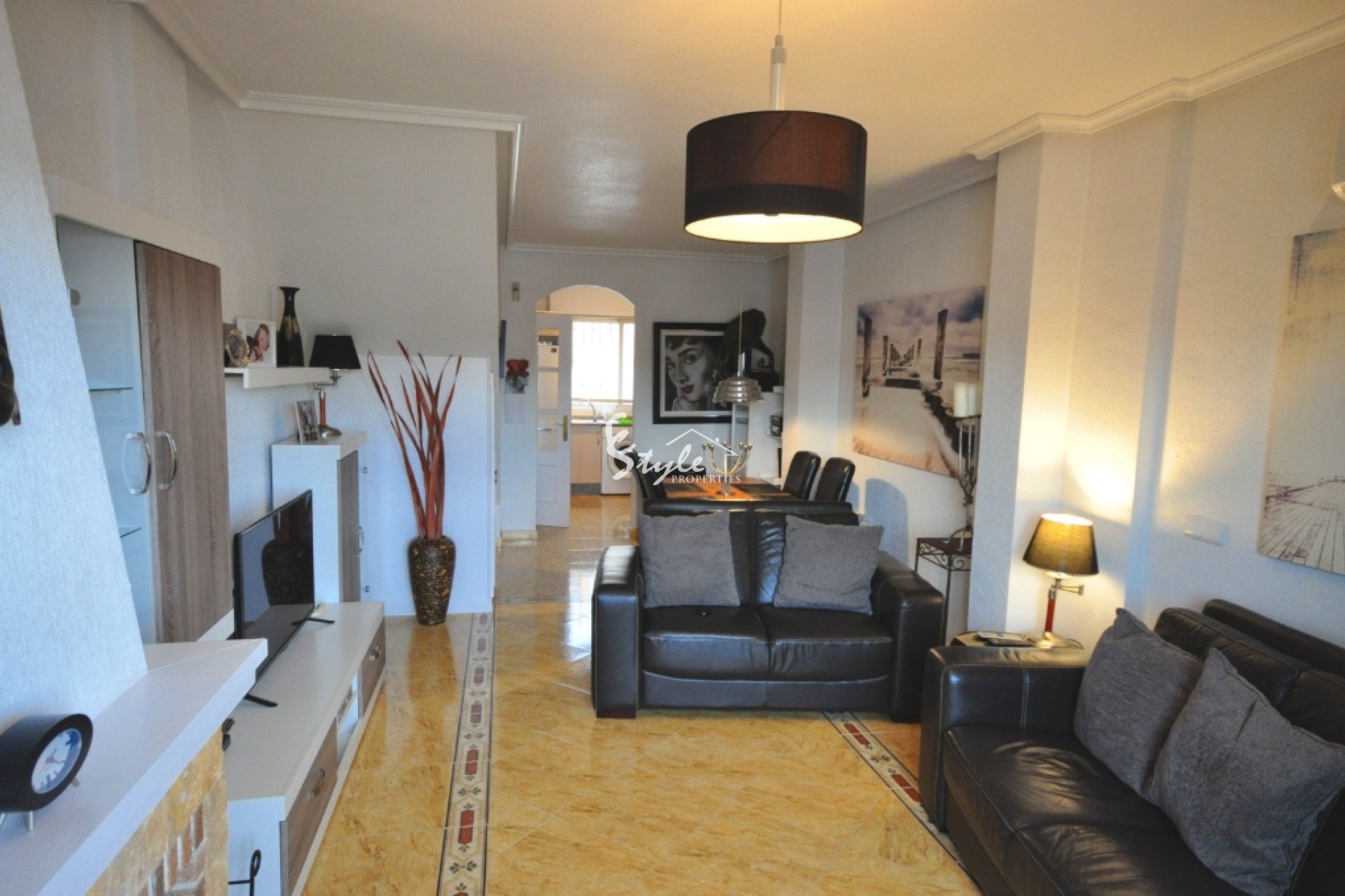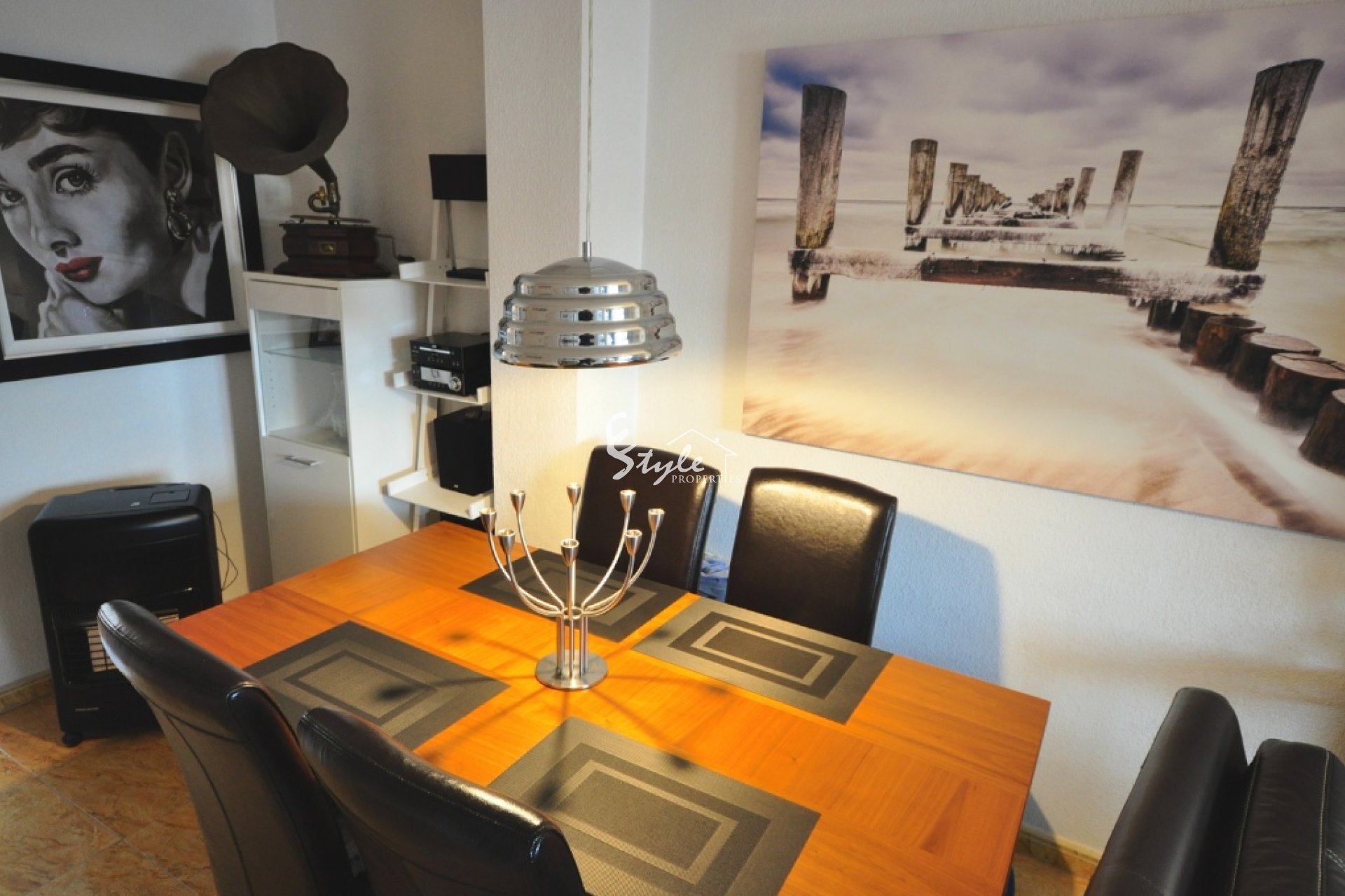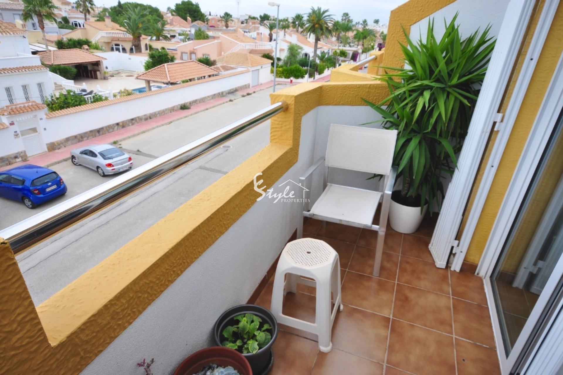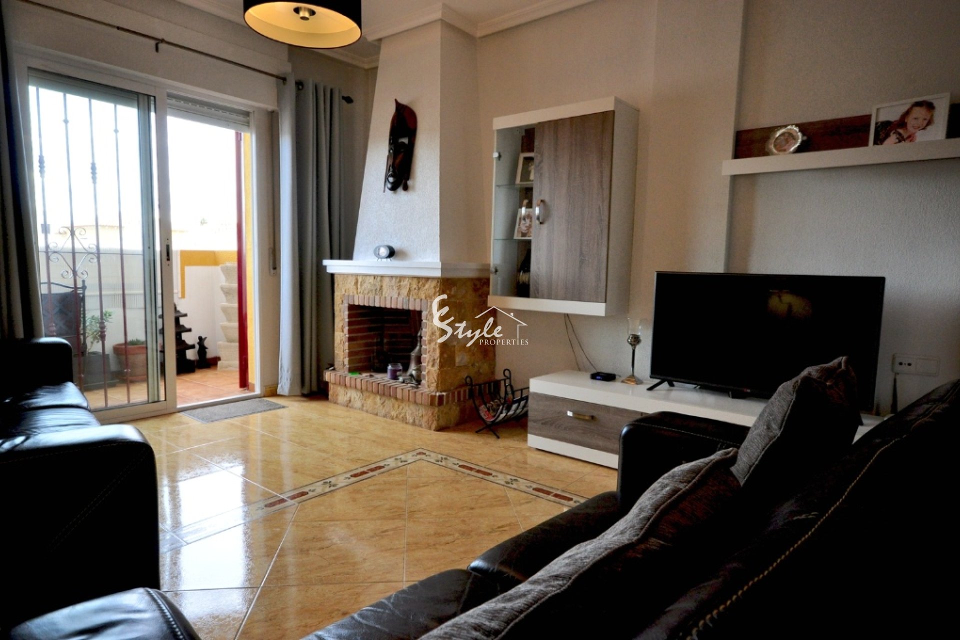 На первом этаже в квартире расположен просторный салон с камином и столовой, открытая кухня и уютная южная терраса. На втором этаже находятся обе спальни, каждая с собственным балконом и ванная комната.