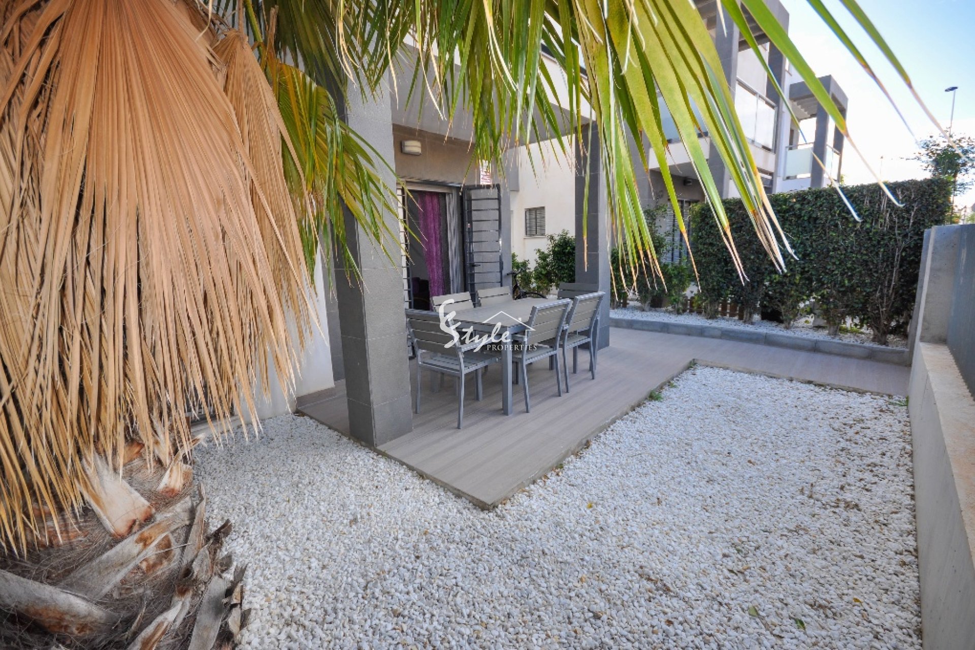 Уютные апартаменты у моря в закрытой урбанизации ¨Amay¨ Пунта Прима. Современные апартаменты имеют 2 спальнями, 2 ванными комнатами, салоном-столовой, с выходом на большую террасу и меблированной кухней с выходом в патио. Квартира имеет сад площадью 44 м2 и парковочно место на закрытой территории комплекса. Урбанизация располагает коммунальным бассейном с сауной и зонами отдыха. Апартаменты расположены в пешей доступности моря и 200 м от коммерческого центра с различной инфраструктурой.