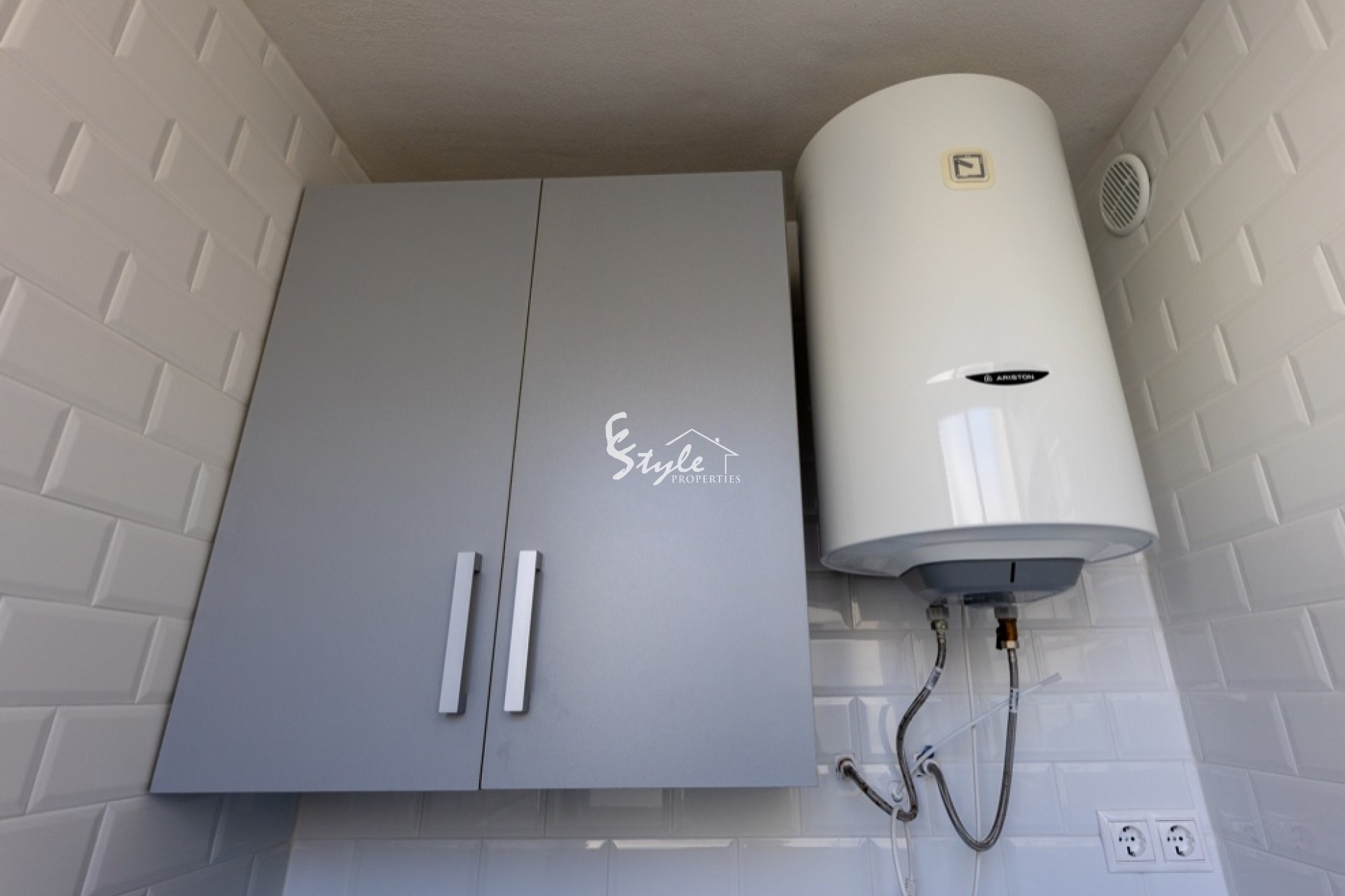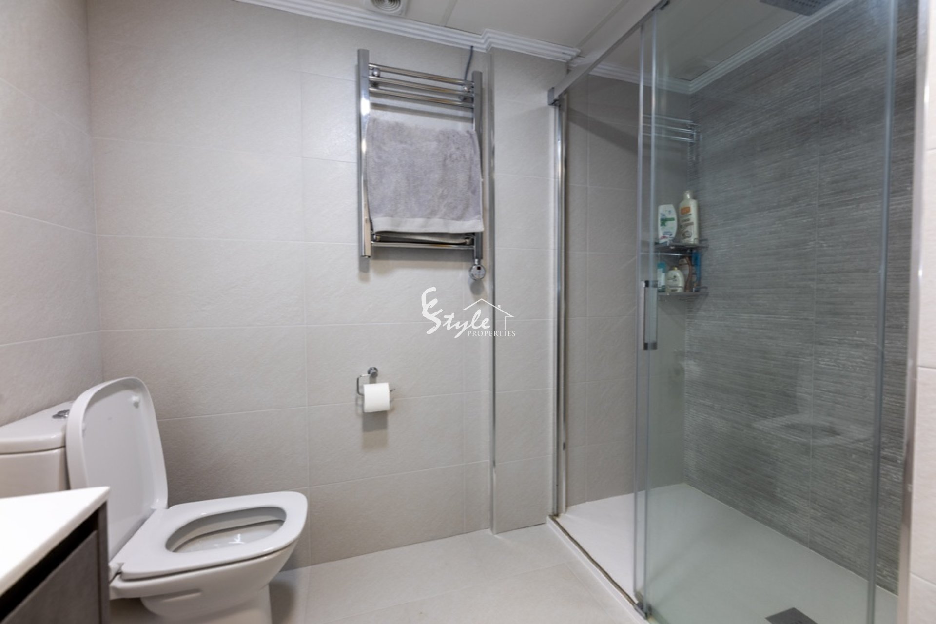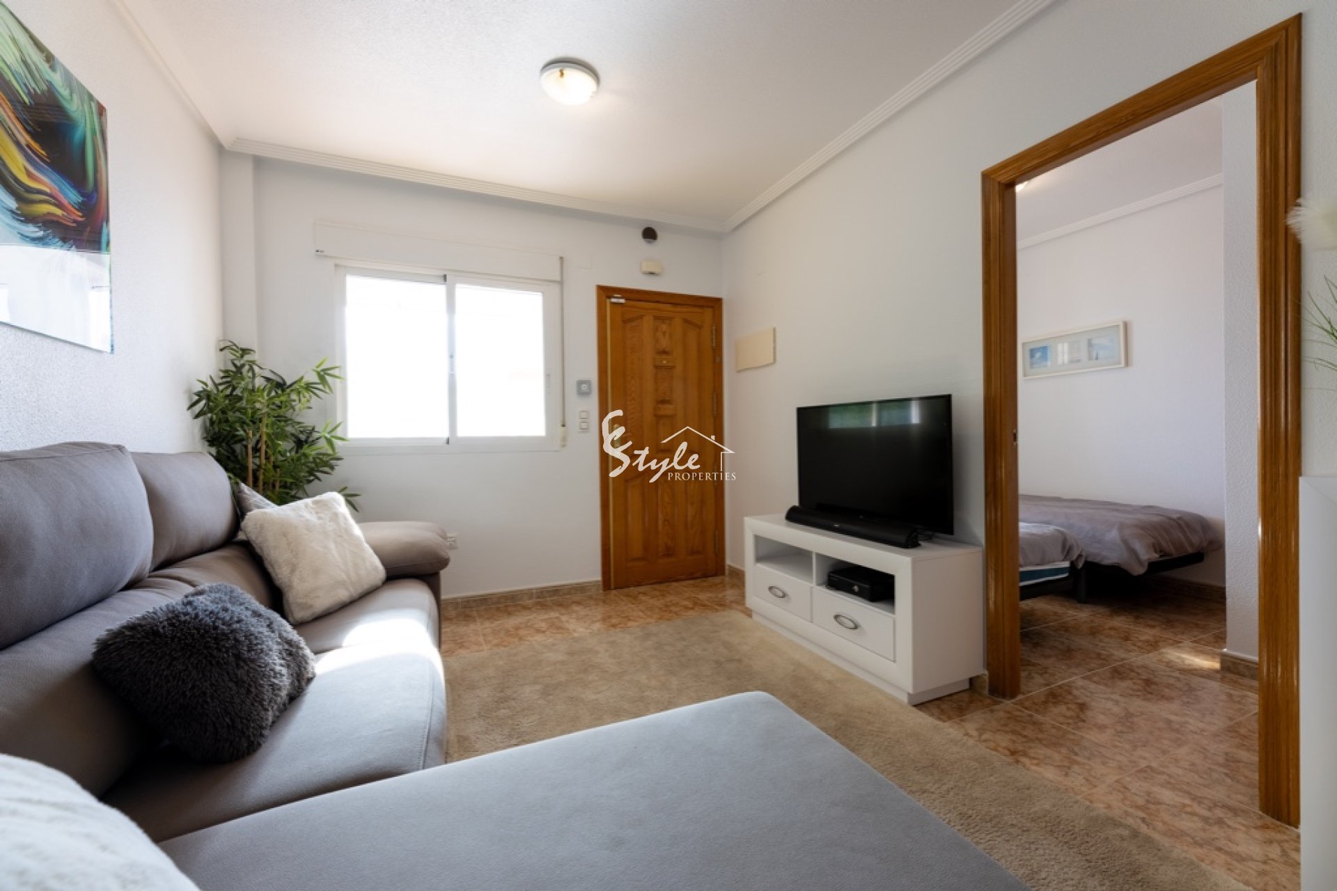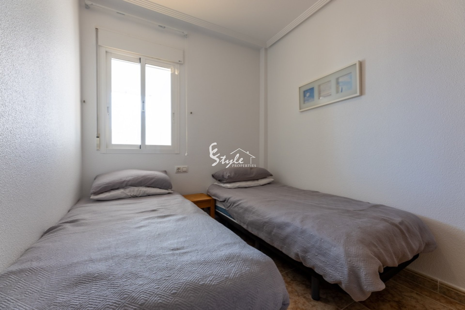 В квартире большая солнечная терраса с прекрасным видом на бассейн, 2 спальни, 1 ванная комната, отдельная кухня с кладовой, гостиная, а также индивидуальный просторный солярий на крыше.