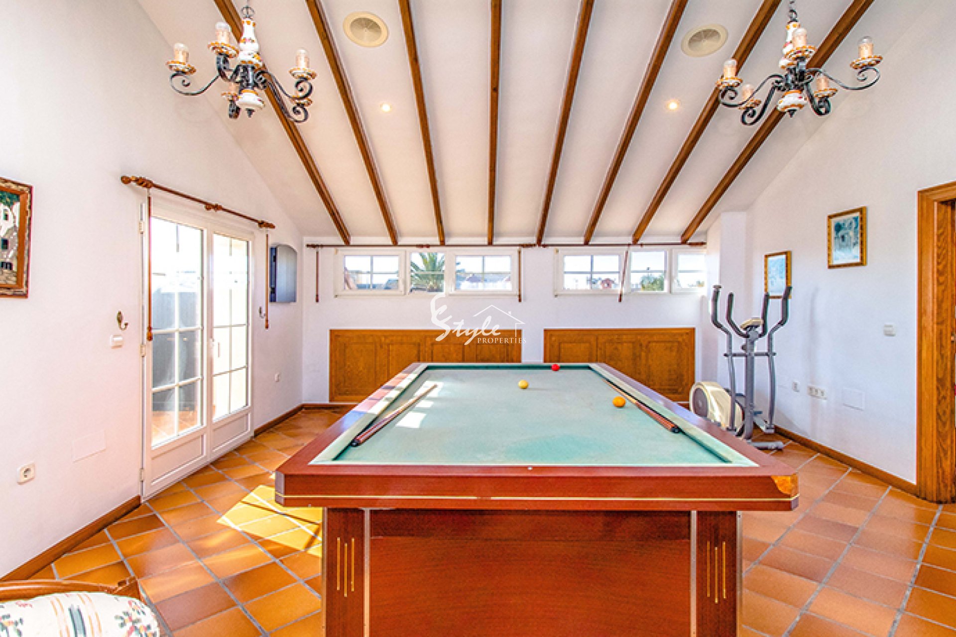 У нас в продаже роскошная вилла с участком 1000 кв.м и частным бассейном. Дом расположен недалеко от моря в Ориуэла Коста и находится в популярном районе Миль Пальмерас, всего в 200 метрах от пляжа. Этот двухэтажный дом имеет 2 большие гостиные, кухню, большую столовую, террасу с видом на бассейн, 4 спальни и 3 ванные комнаты. В доме есть библиотека, бильярдная с баром, прачечная, гараж и продается "готовая к заселению". Эта недвижимость имеет прекрасный ухоженный сад с зелеными насаждениями и пальмами, зона барбекю и зона отдыха, открытая парковка.