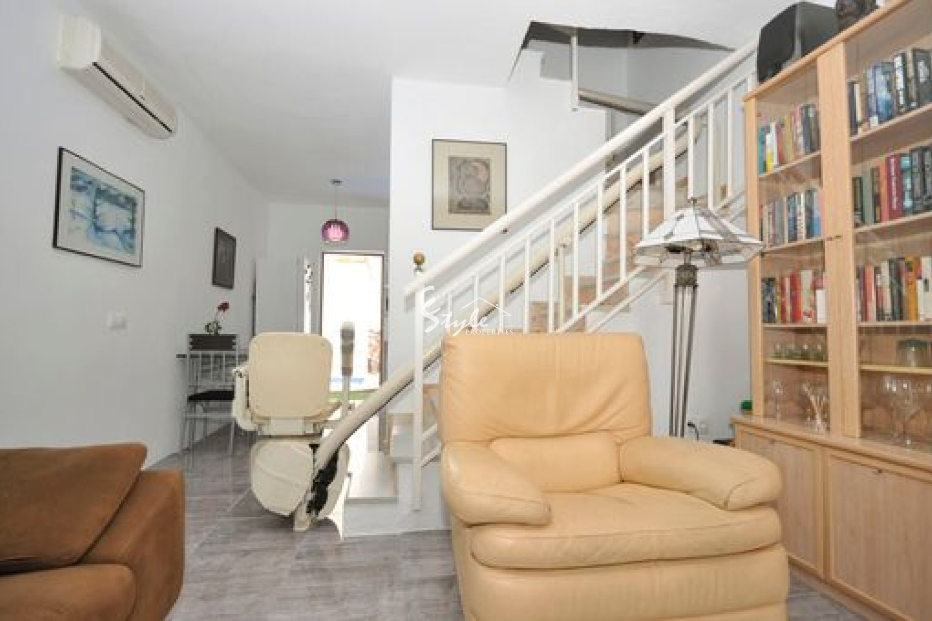 У нас есть таунхауз на продажу в 500 метрах от пляжа и Средиземного моря. В доме адаптированном для инвалидов есть частный бассейн, 2 спальни и 2 ванные комнаты, открытая кухня, гостиная с лифтом и просторная терраса. Большая терраса с прекрасным видом на бассейн и сад. Дом продается с мебелью. Идеальное жилье, готовое к проживанию, в признанном районе Торревьехи, в нескольких шагах от пляжа и в окружении всех услуг.