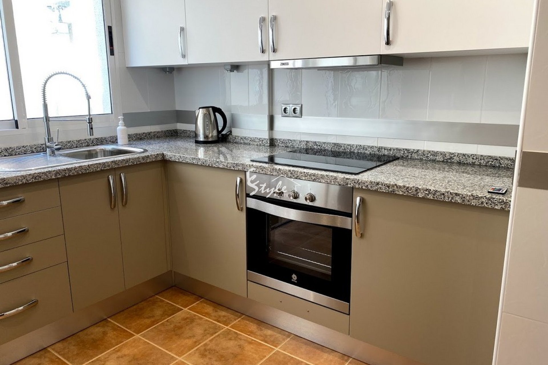 У нас в продаже полу-отдельный дом (таунхаус) в жилом комплексе Las Chismosas, Los Altos, Torrevieja. Этот дом полностью отремонтирован в стиле Ibicenco и полностью обставлен для проживания. Общая площадь 100 кв.м и верандой. В доме 4 спальни со встроенными шкафами, ванная комната, туалет, открытая кухня, гостиная и терраса. Этот замечательный дом выходит на общий сад и зеленые зоны. Вокруг есть большие зеленые зоны с бассейном и садом. Жилье расположено примерно в 3 километрах от моря и недалеко от всех городских услуг.