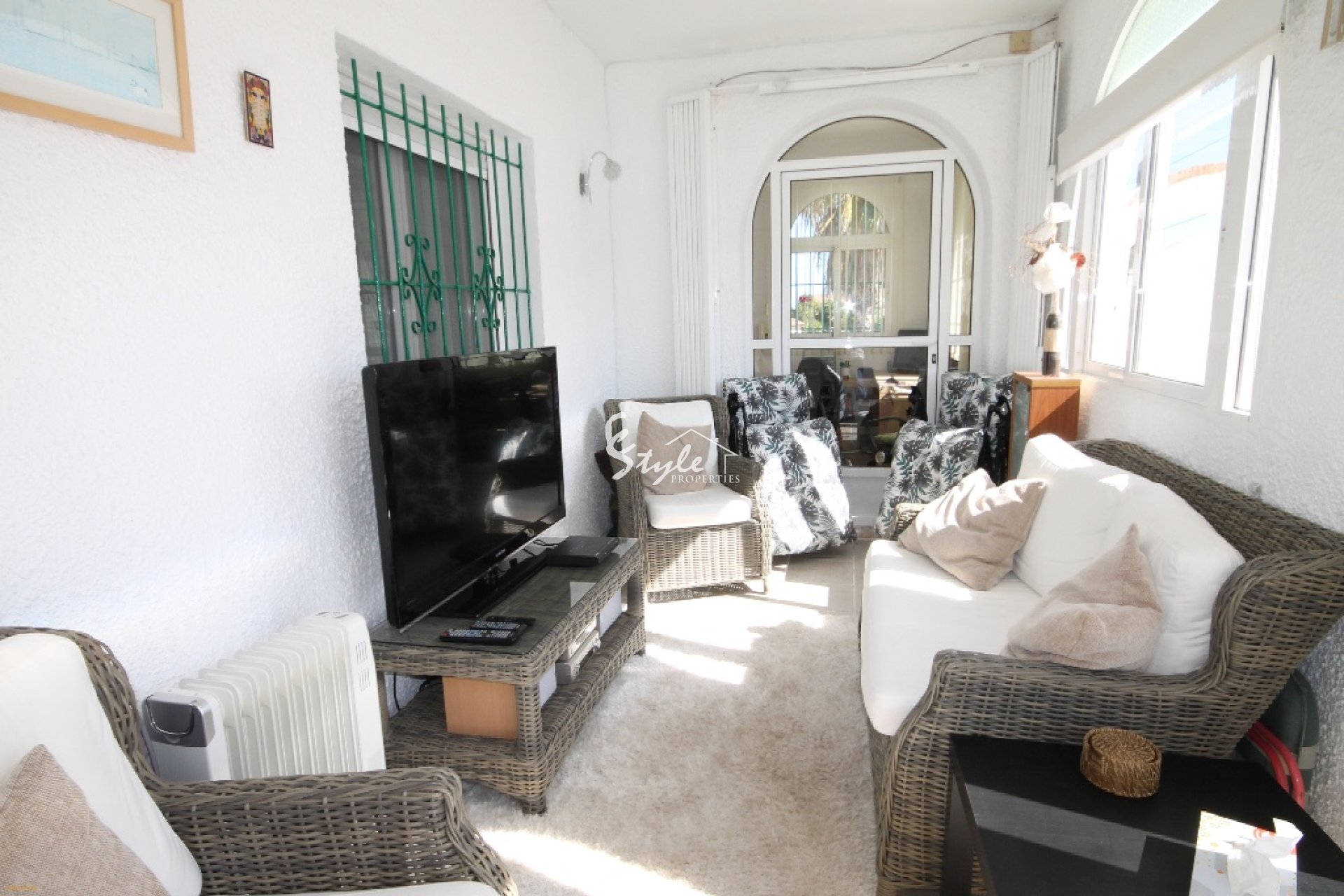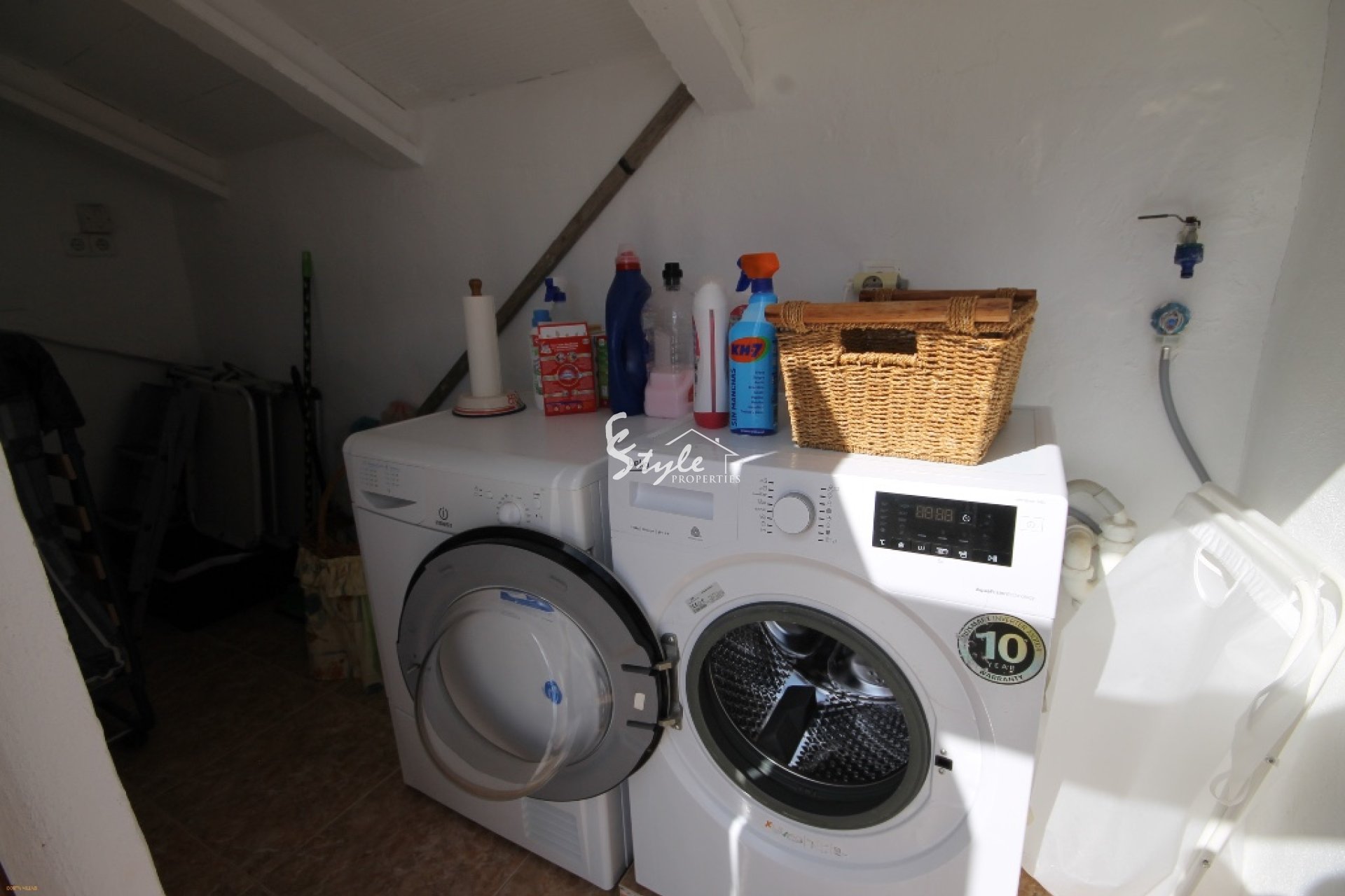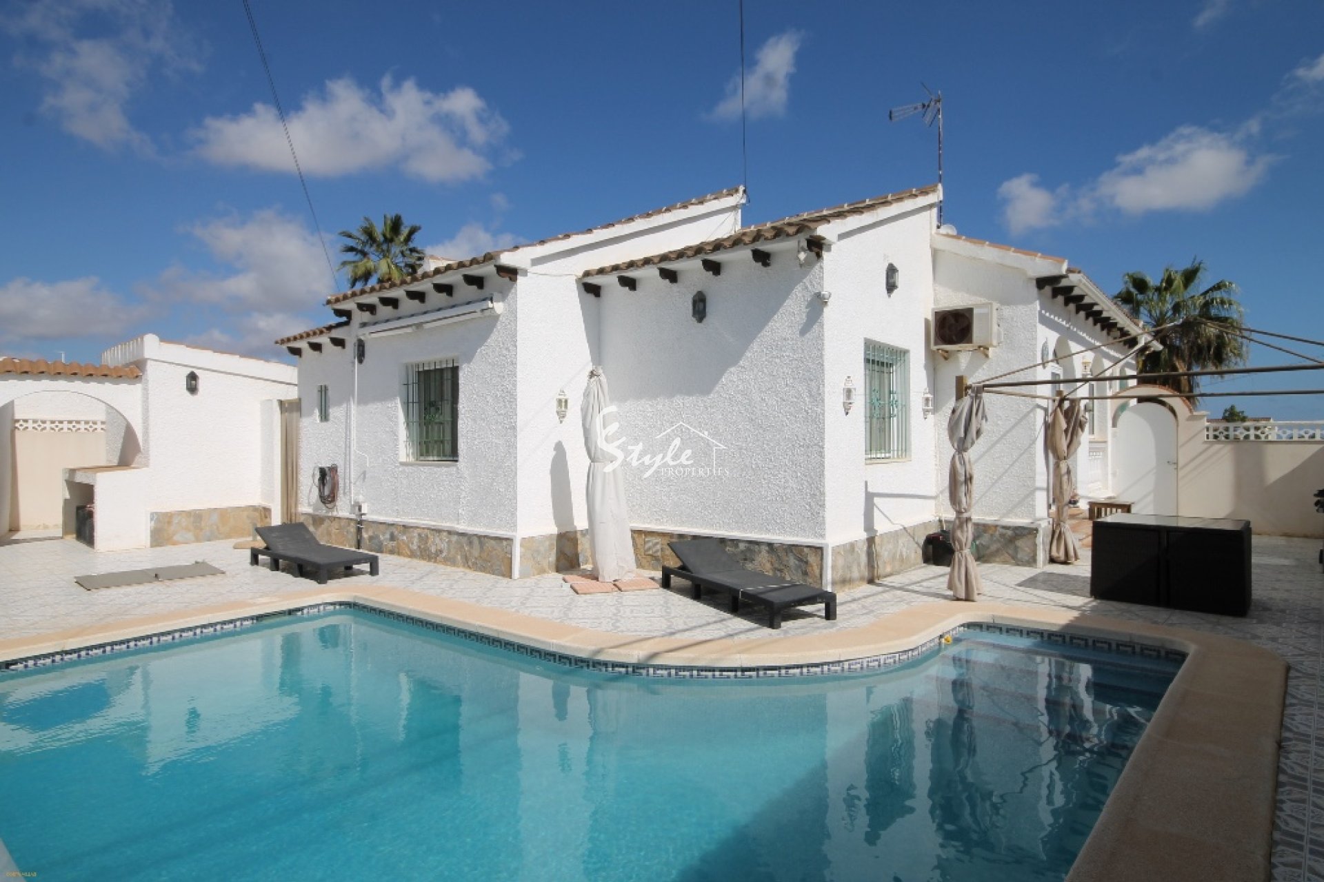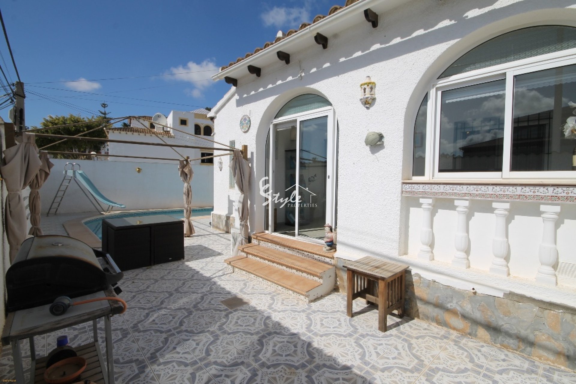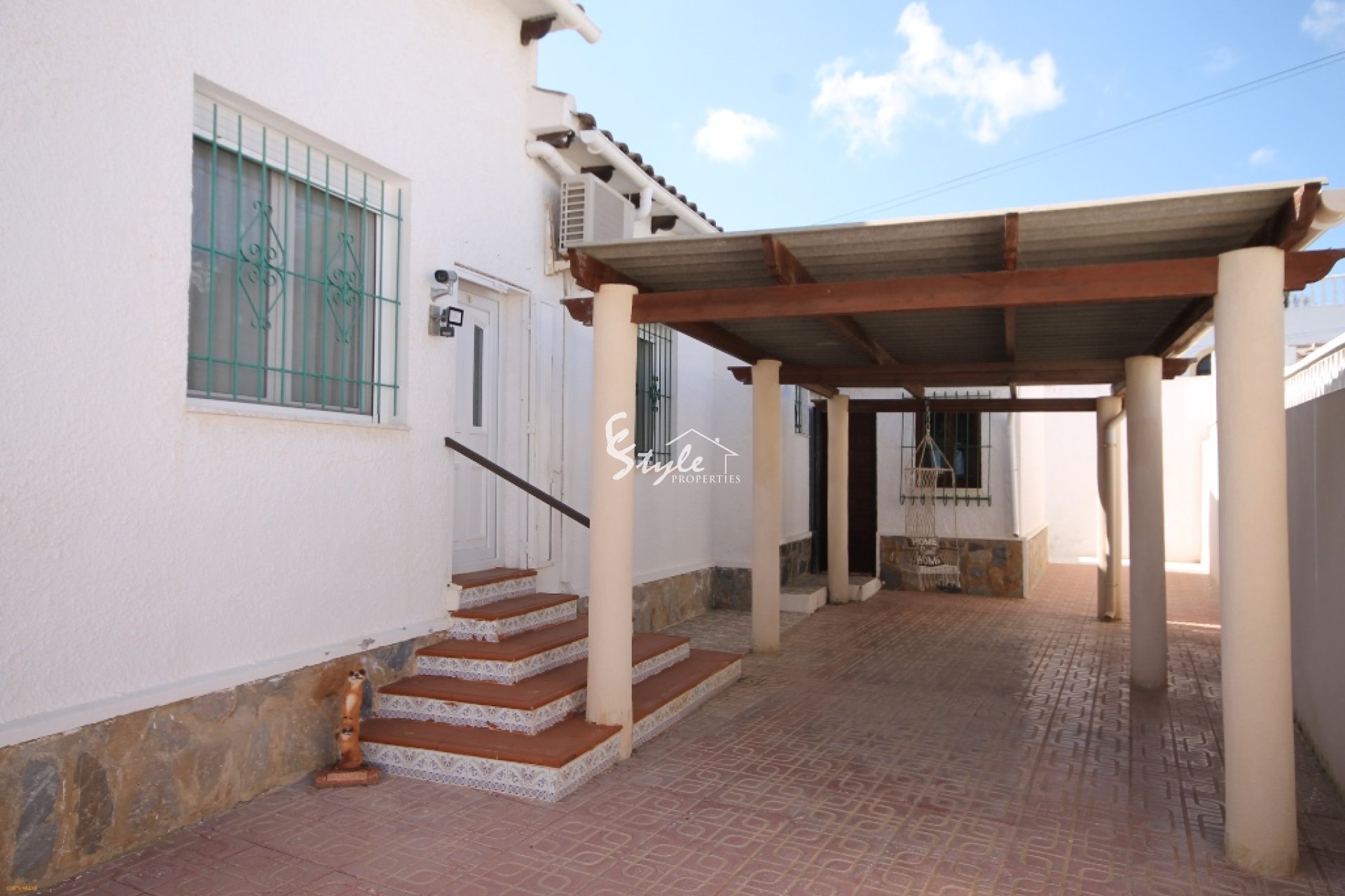 На участке площадью 500 м2 есть частный бассейн с горкой, беседка, большое складское помещение и парковка на 2 машины. Вилла также имеет окна и двери с двойным стеклопакетом, сигнализацию, кондиционер, газ, общий бассейн и продается с мебелью. В пешей доступности от виллы находится площадь Villamartin Plaza с множеством баров, ресторанов и магазинов.