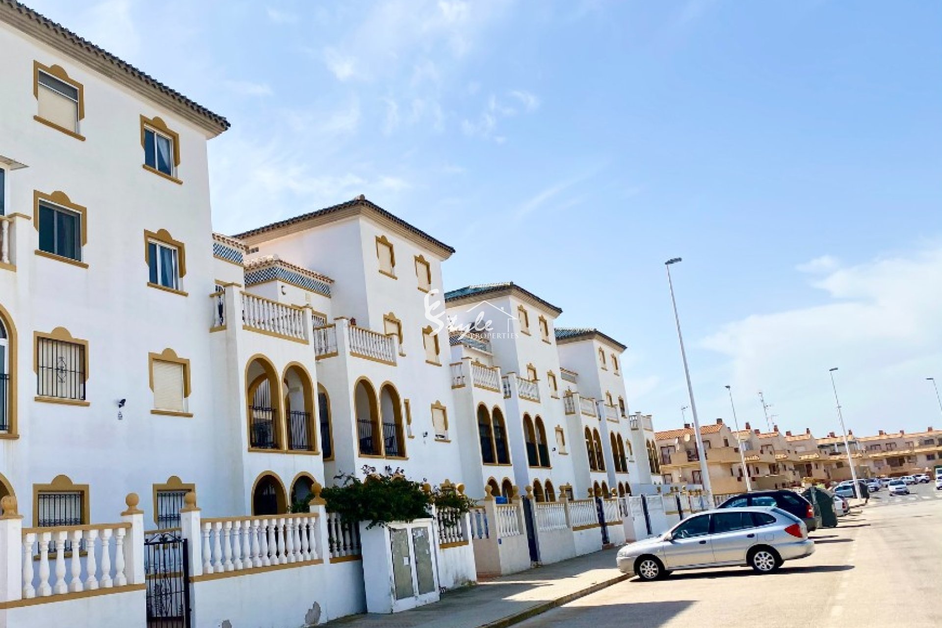 У нас в продаже апартаменты с террасой в пешей доступности от пляжа в Молино Бланко. Дом с видом на юг, расположен недалеко от моря и пляжа в "La Zenia". В квартире есть гостиная, открытая кухня, терраса с выходом из гостиной, 2 спальни и ванная комната. Дом продается в состоянии "готов к заезду", полностью мебелирован и с электротехникой. Очень светлая гостиная-столовая с прямым выходом на террас. Жилой с бассейнами, зелеными зонами и общественной парковкой. Пляж около расположен в 1 км пешей доступности.