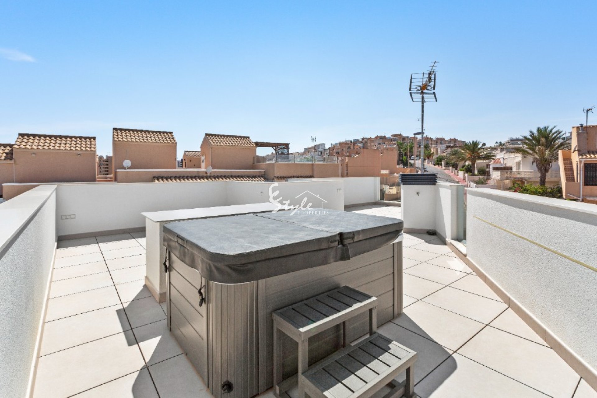 Современная вилла имеет 3 спальни, 4 ванные комнаты, гостиную / столовую, кухню в американском стиле, частный бассейн с шейным потоком, частный участок, террасу, парковку и солярий с джакузи и баром наверху. Предварительная установка централизованной системы кондиционирования воздуха, состоящей из каналов кондиционирования и горячего водоснабжения через машины на аэротермический агрегат. Дом будет передан с установленной кухонной техникой и оборудованием. Солярий на верхнем этаже с великолепным видом на зеленые зоны, панорамным видом на море и лагуну Ла Мата. Снаружи есть красивая терраса с частным бассейном и небольшой сад. Полностью отделанный участок с забором, нескользящая плитка, естественный газон, на участке светодиодное освещение. Максимальные конструктивные качества для достижения максимального комфорта.