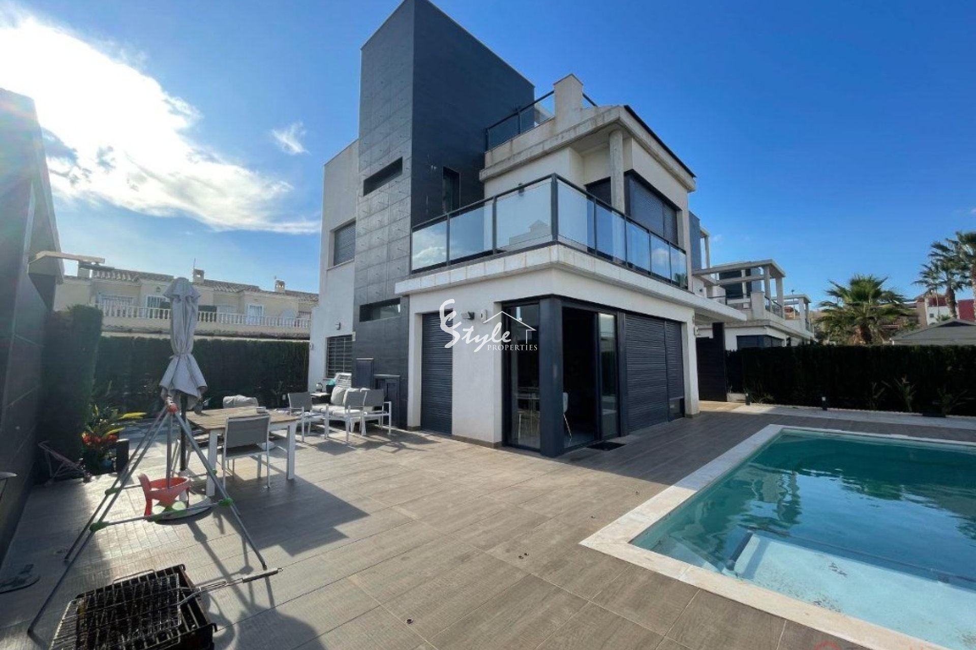 У нас есть в продаже эта очаровательная вилла в современном стиле и в очень хорошем жилом комплексе района Ломас-де-Кабо-Роиг, Ориуэла Коста. Дом находится недалеко от моря, с шикарными видами с приватного солярия. Эта собственность имеет небольшой участок земли с бассейном и площадкой для барбекю, 3 спальни, 4 ванные комнаты, открытую кухню, гостиную, 2 террасы. В главной спальне есть двойные встроенные шкафы и ванная комната. В спальнях больших размеров могут быть установлены двуспальные кровати, есть встроенные шкафы с естественным освещением. Это очаровательный дом благодаря своему расположению недалеко от моря и пляжей Кабо Роиг, полей для гольфа, коммерческого центра в Ла Зения.