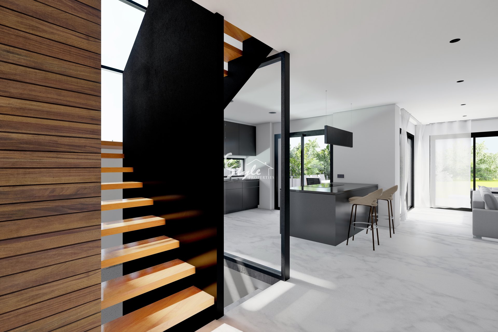 Новая современная вилла имеет 3 спальни, 3 ванные комнаты, гостиную/столовую, кухню в американском стиле и цокольный этаж или гараж около 95 м2. Снаружи есть красивая терраса с частным бассейном и садом. Максимальные конструктивные качества для достижения высочайшего уровня комфорта.