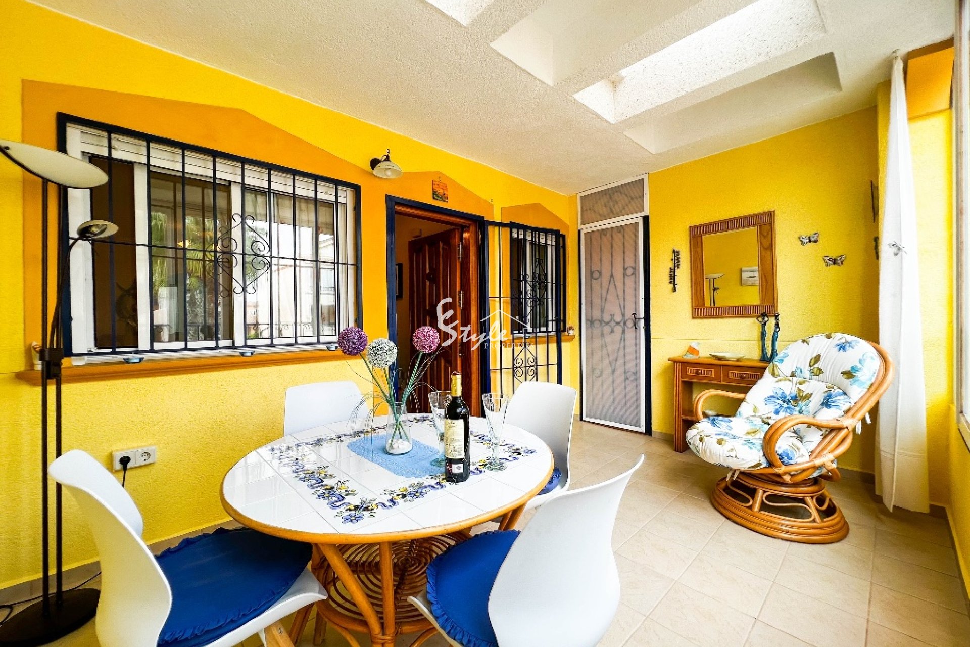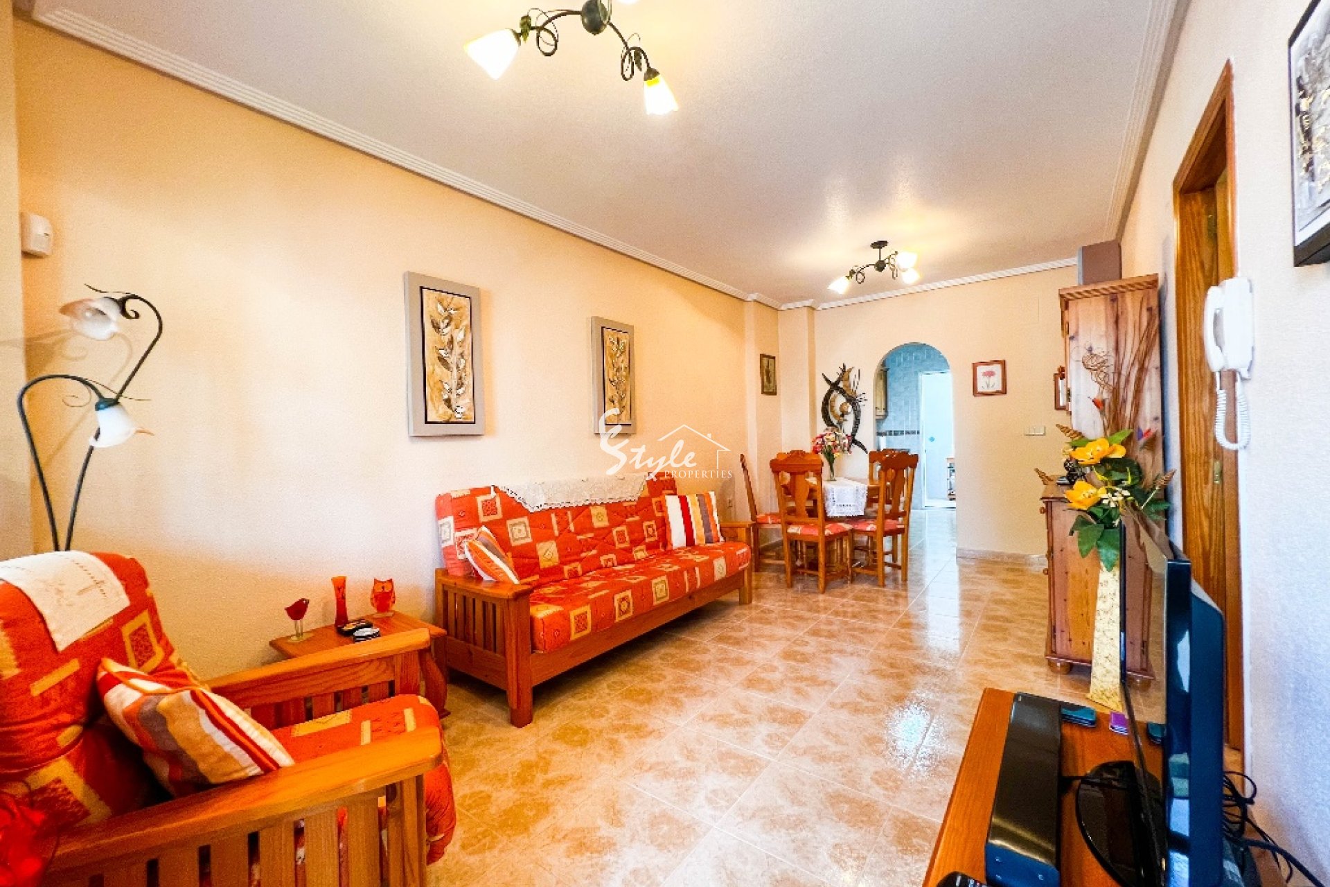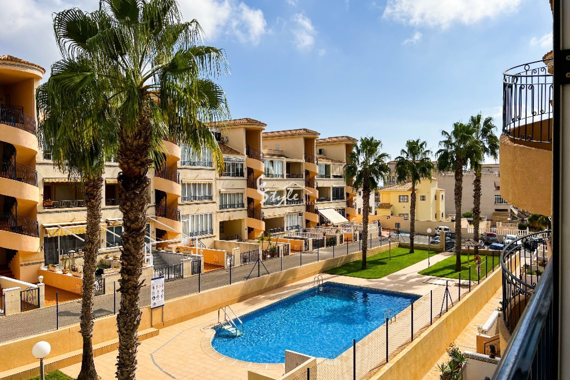 В апартаментах 2 спальни, 1 ванная комната, гостиная, отдельная кухня с подсобным помещением, террасa с видом на бассейн и солярий, обустроенный под зону отдыха. Продается с мебелью. Квартира находится в уютном комплексе c двумя бассейнами ¨Don Sancho V¨