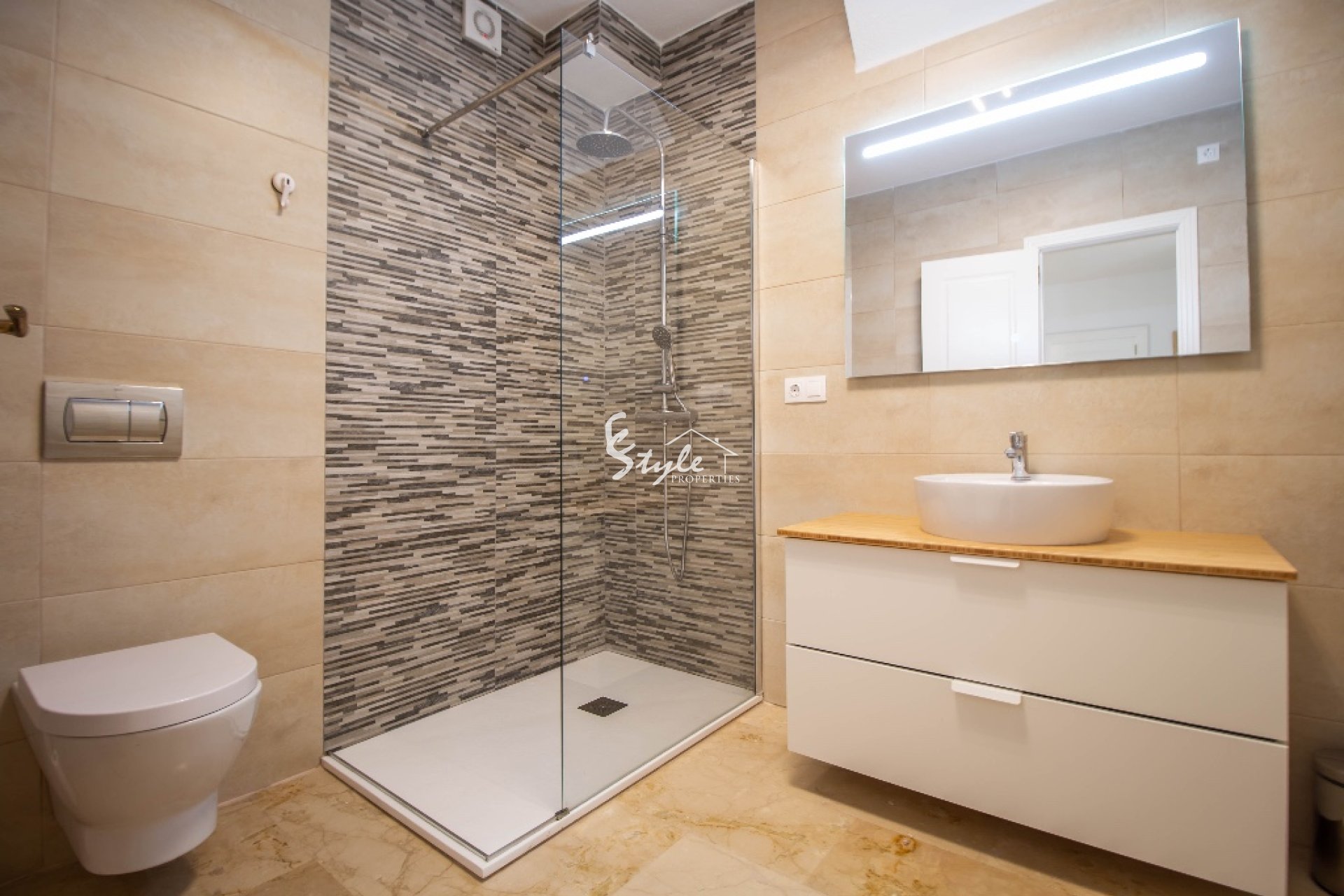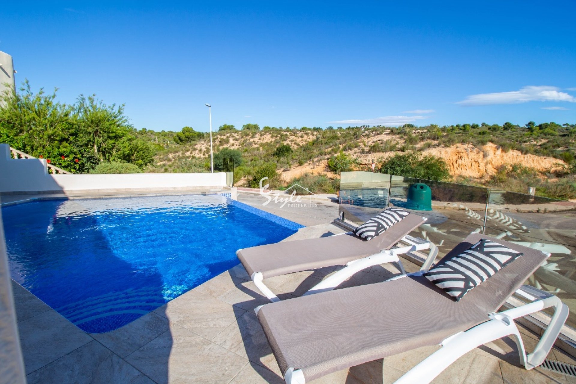 Лас Рамблас престижный район, расположенный на юге Коста Бланка, в потрясающе красивой природной зоне гольф полей. Благодаря природному ландшафту здесь из каждой точки открываются великолепные пейзажи. Также в районе развита инфраструктура - все удобства находятся в пешей доступности - супермаркеты, рестораны, бары, аптеки, банки и многое другое. В нескольких минутах езды располагаются чистые песчаные пляжи Кабо Роиг, Кампоамор, Ла Зения, крупные торговые центры, школы, аквапарки и множество других удобств и развлечений.