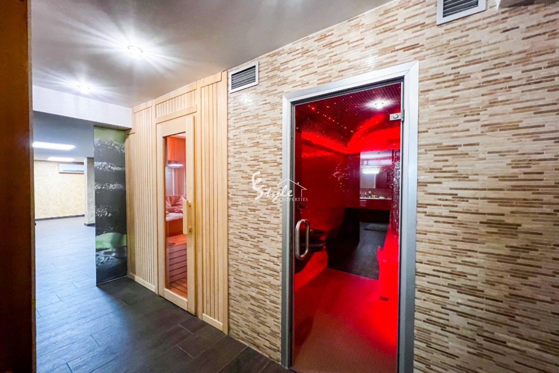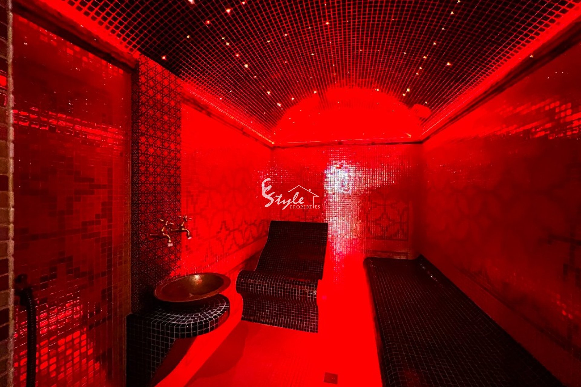 В подвале пол с подогревом, обе сауны можно включить по таймеру. Также очень важно отметить, что на обоих уровнях, где расположены спальни, отдельный климат-контроль.Ла Мата великолепный район, расположенный на юге Ориуэла Коста. Завораживающие морские пейзажи, мягкий средиземноморский климат делают Ла Мату излюбленным местом для жизни и отдыха среди жителей Европы. Сложившаяся атмосфера легкости сделали это место одним из лучших на побережье..