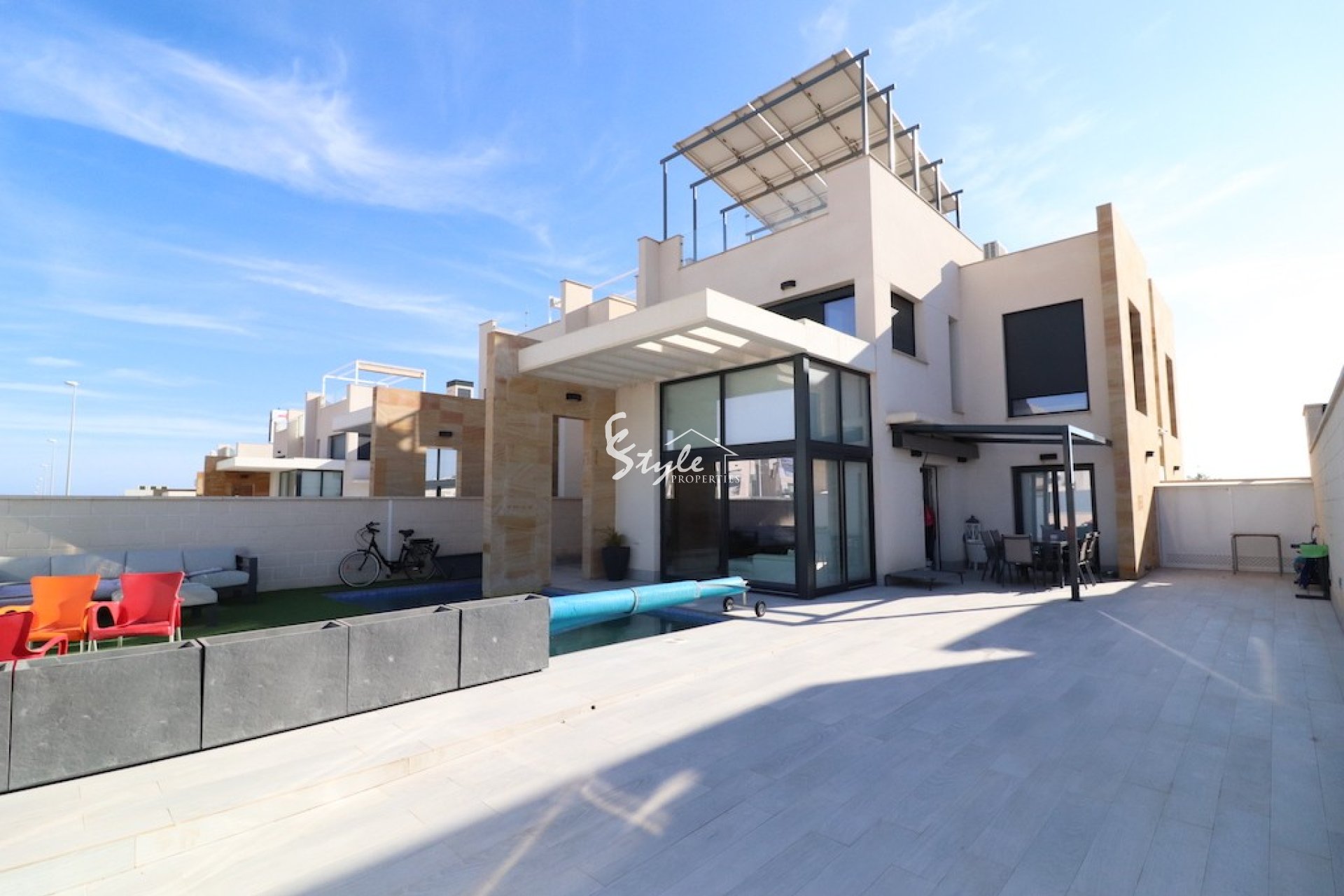 У нас есть в продаже эта очаровательная вилла в современном стиле и в очень хорошем жилом комплексе района Ломас-де-Кабо-Роиг, Ориуэла Коста. Дом находится недалеко от моря, с шикарными видами на море с приватного солярия. Эта собственность имеет небольшой участок земли с бассейном и площадкой для барбекю, 3 спальни, 3 ванные комнаты, открытую кухню, гостиную, терраса. В главной спальне есть двойные встроенные шкафы и ванная комната. В спальнях больших размеров могут быть установлены двуспальные кровати, есть встроенные шкафы с естественным освещением. Это очаровательный дом благодаря своему расположению недалеко от моря и пляжей Кабо Роиг, полей для гольфа, коммерческого центра в Ла Зения.
