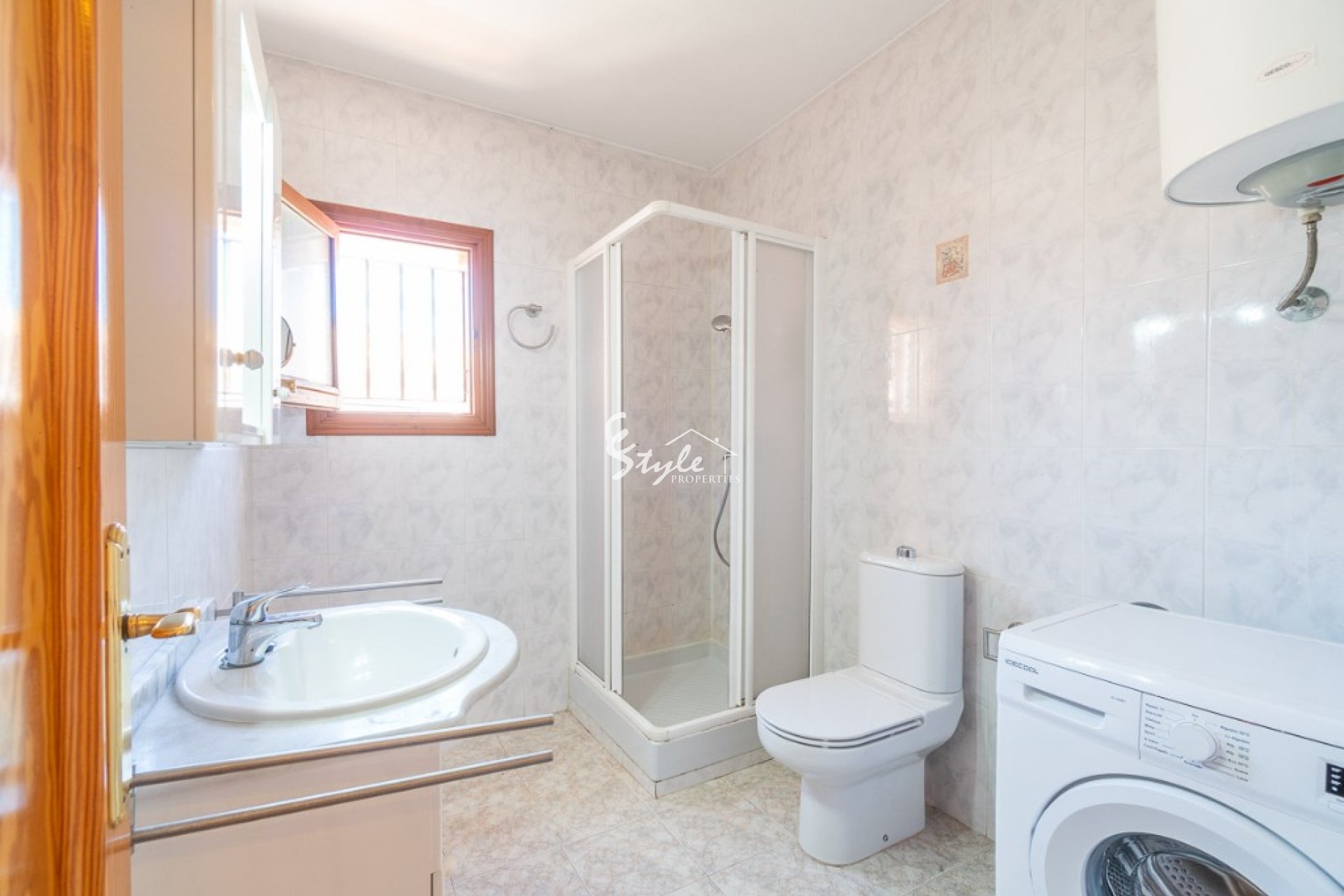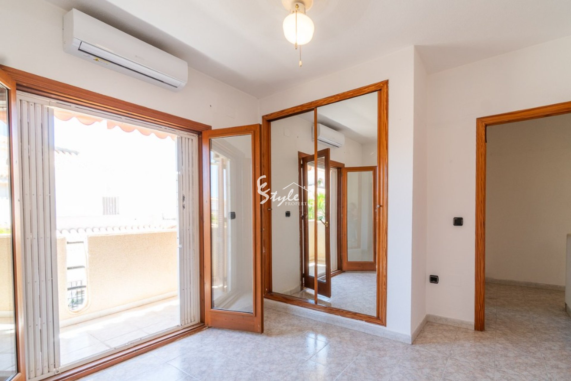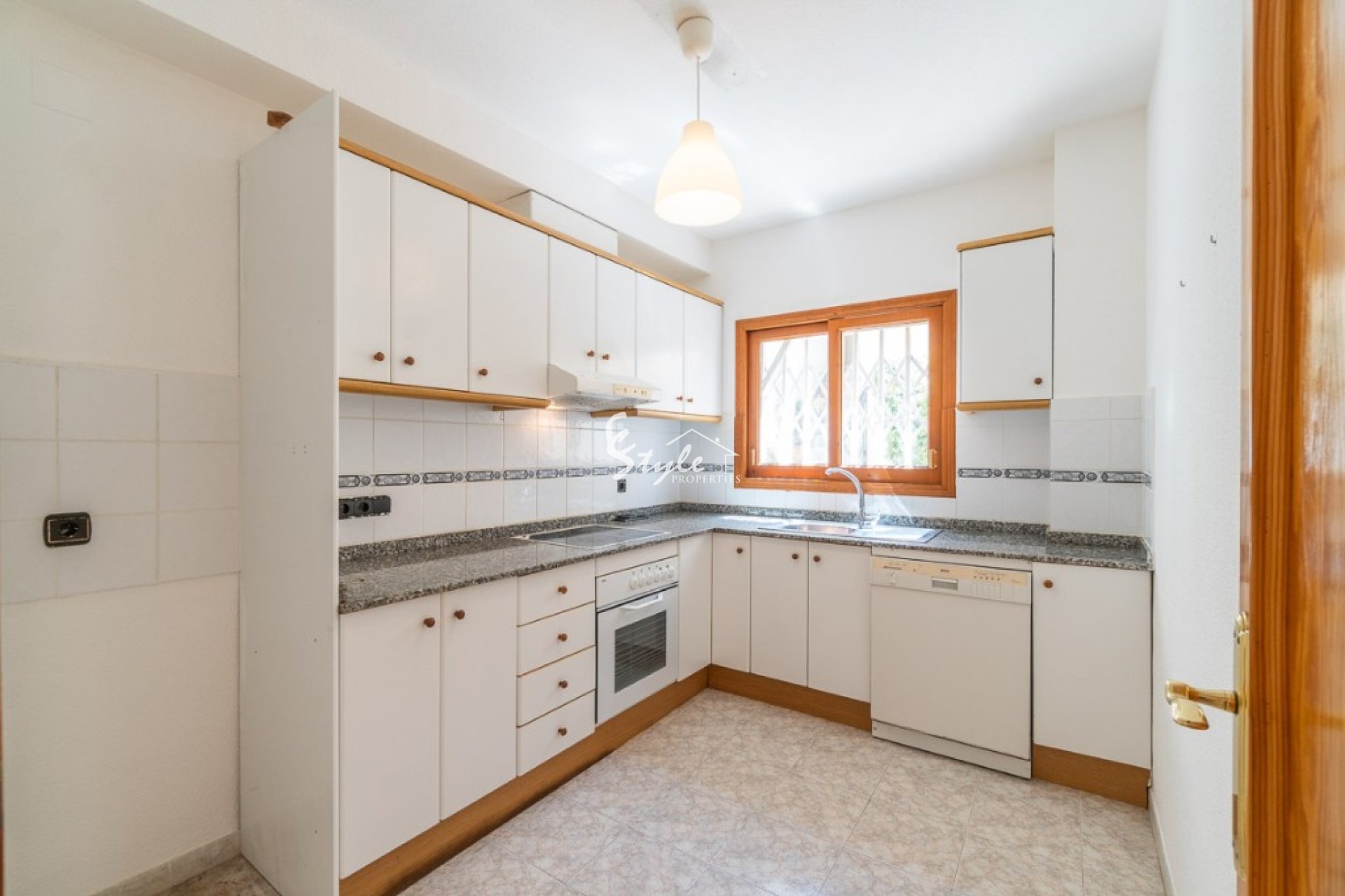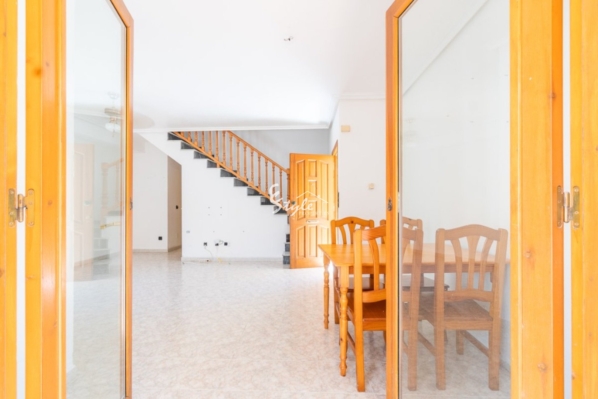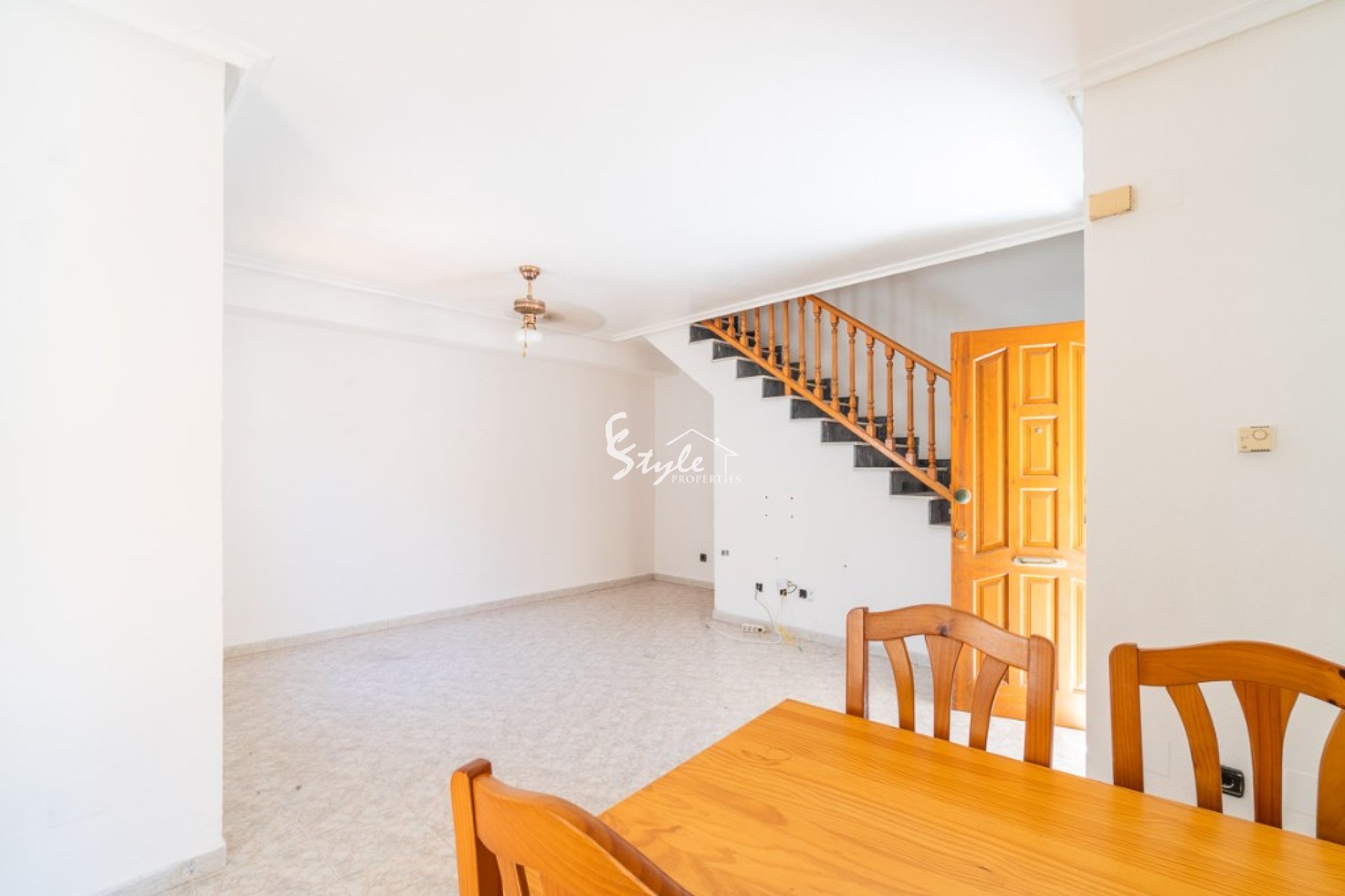 У нас в продаже полу-отдельный дом (таунхаус) в жилом комплексе на Playa Flamenca, Torrevieja. Этот дом полностью готов к заселению. Общая площадь около 100 кв.м и небольшой участок земли собственности. В доме 2 спальни со встроенными шкафами, ванная комната, туалет, кухня, гостиная и терраса. Жилье расположено примерно в километре от моря и недалеко от всех городских услуг. Первоначально в доме было 3 спальни, но в своё время спальня на первом этаже была преобразована в отдельную кухню, и поэтому, несмотря на то что в нем только 2 спальни, размер почти 100 м2 соответствует дому большого размера: гостиная-столовая намного больше, чем обычно в домах такого типа. В доме также есть полы с радиальным подогревом для отопления нескольких недель холодного периода зимы в нашем районе.