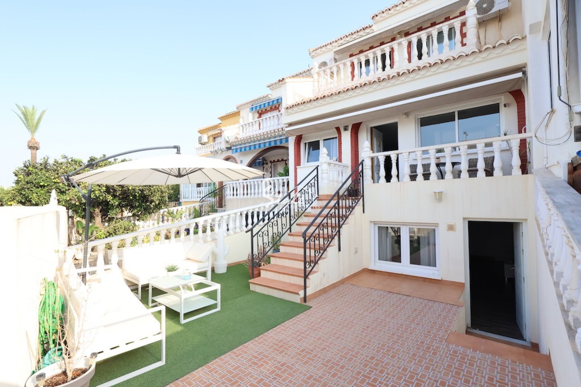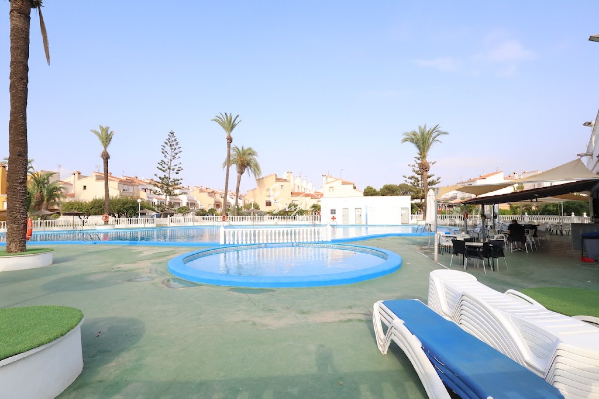 В продаже полу-отдельный дом в хорошем состоянии в Torrealmendros, Торревьеха. Жилье с собственным участком с общим бассейном, и верандой расположен в очень хорошем районе, в нескольких километрах от прекрасных пляжей Торревьехи.